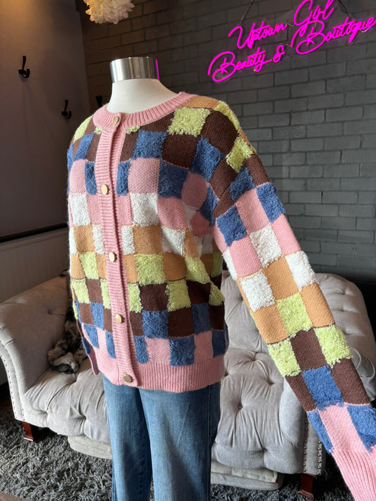 Rita Plush Checkerboard Cardigan