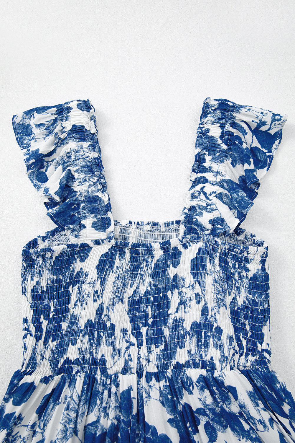 Embrace effortless charm with the Aruba Smocked Floral Dress. Its blue floral pattern and ruffled hem add a playful touch, while the square neck and smocked bodice enhance your silhouette for a flattering fit. The sleeveless ruffled straps offer a cool, breezy feel perfect for warm days. This fit-and-flare midi dress combines comfort and style, making it a versatile choice for casual outings or garden parties. Turn heads with a look that’s both fresh and feminine.