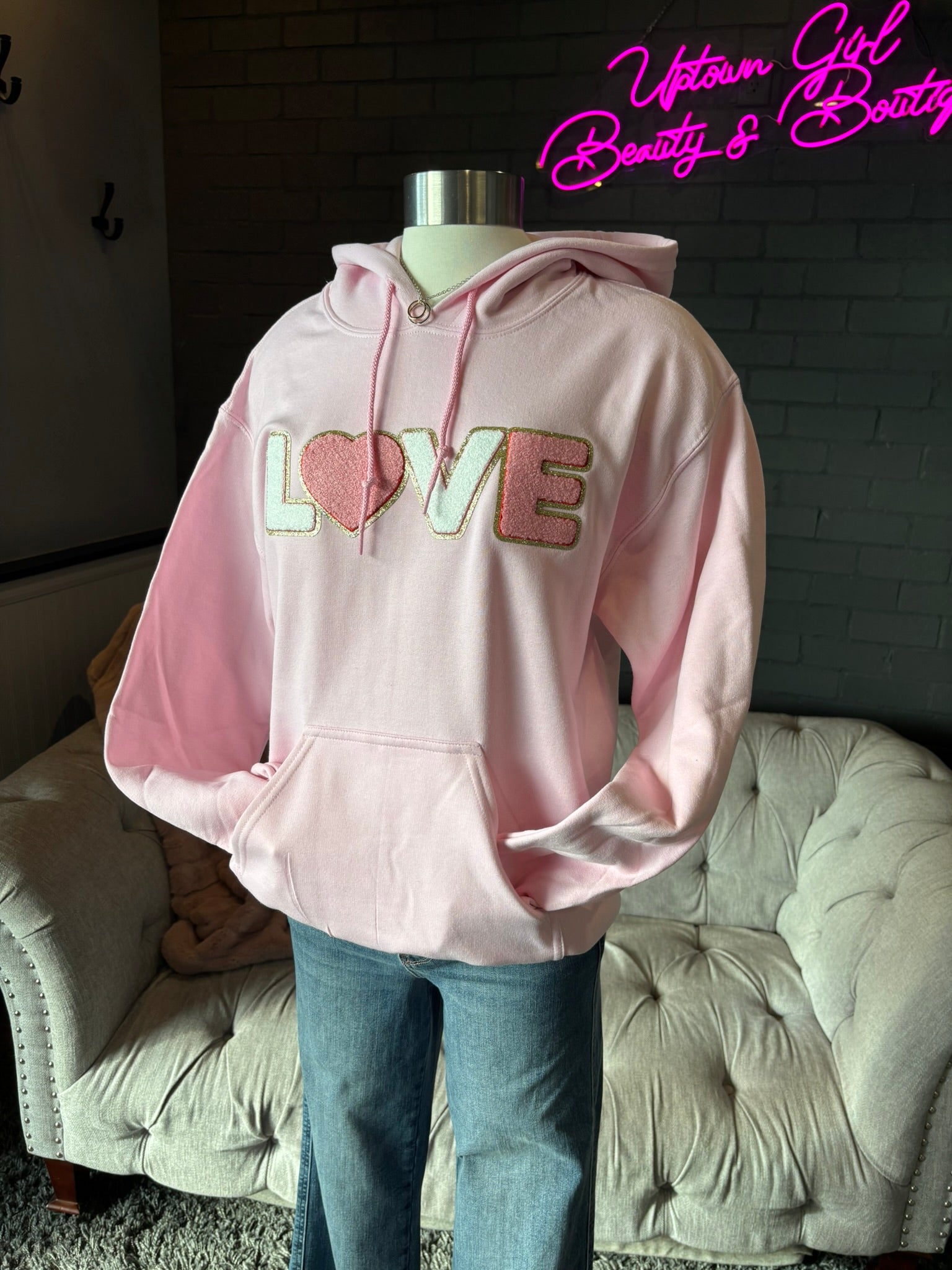 Spread the love this Valentine's Day in our Feeling The Love Hoodie! Featuring a playful chenille patch adorned with fun details and eye-catching glitter, this pink beauty is the perfect way to show your romantic side. Cozy, cute, and conversation-starting—it's the hoodie that says what your heart's feeling without saying a word. Grab yours before they're gone!
