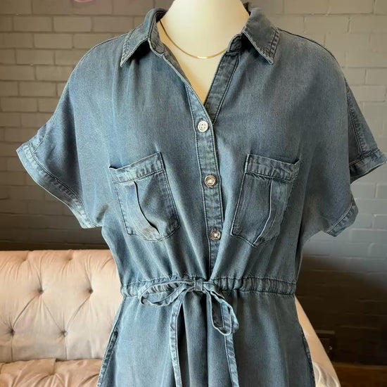Throw on the Hallie Denim Shirt Dress and instantly elevate your everyday look—this isn't just another piece in your closet, it's your new go-to for looking put-together without trying. With a crisp collar, adjustable drawstring waist, and hidden pockets, you get that polished vibe with all the comfort and flexibility you actually want to wear.