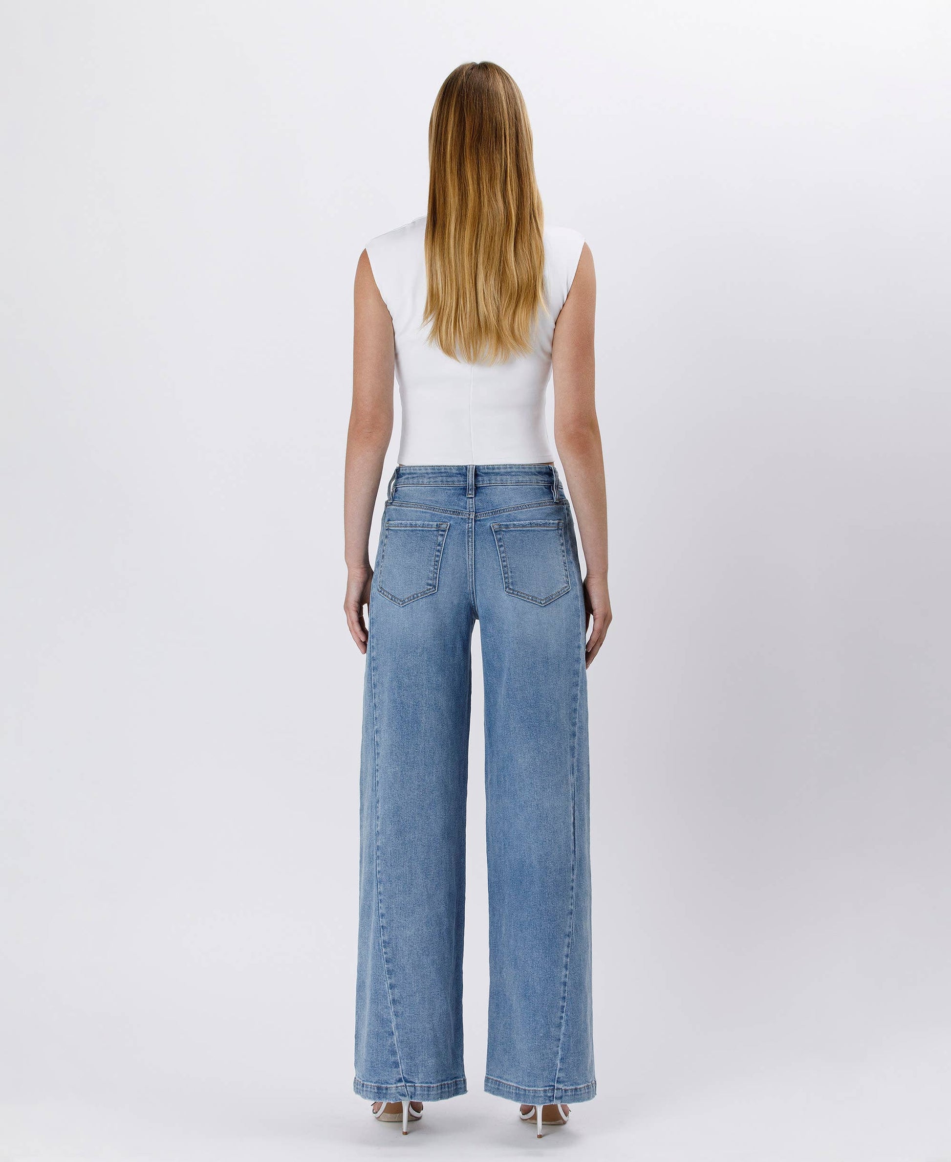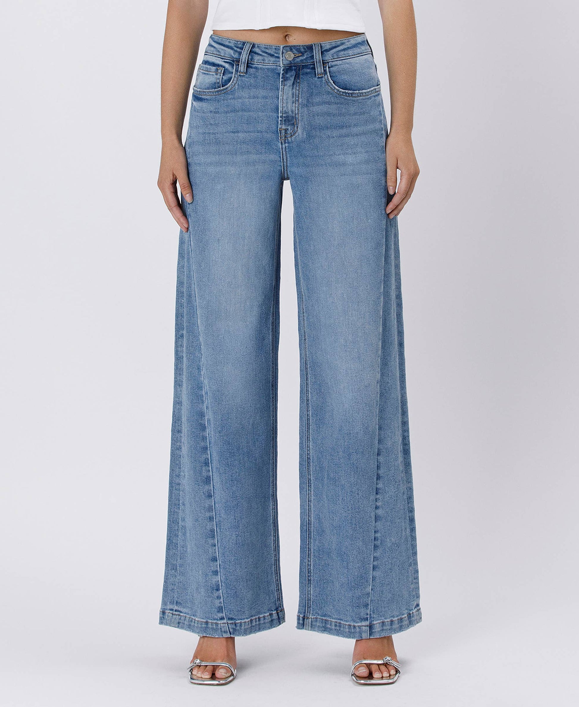 Elevate your denim game with the Maria Palazzo Jeans—the perfect blend of style and comfort. These high-rise beauties feature a flattering 10½" rise and full-length palazzo silhouette that elongates your legs while keeping you comfy all day long. The signature front seam detail adds an unexpected edge to your everyday look, while the soft medium wash keeps things effortlessly chic. Crafted from comfort stretch denim, they move with you without sacrificing that polished vibe. Whether you're dressing up or keeping it casual, these jeans are your new go-to for looking put-together and feeling amazing.
