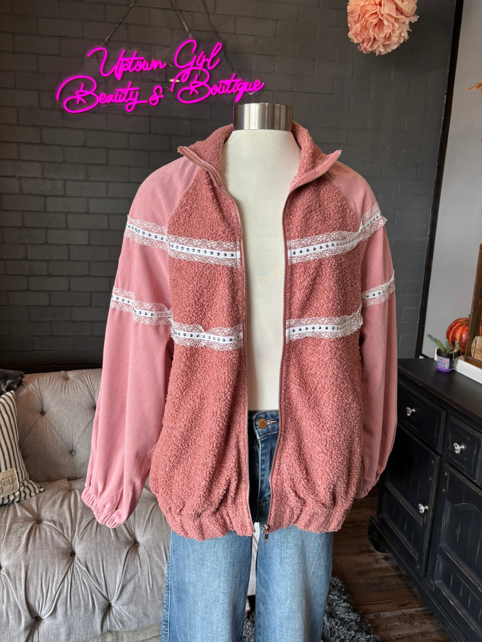 Stay cozy and chic with the Rose Sherpa Jacket. Featuring a soft sherpa fabric and a flattering shift silhouette, this jacket offers warmth without sacrificing style. The feminine lace splicing and turn-down collar add unique, eye-catching details, while the convenient zipper closure ensures easy layering. Perfect for daily wear, it’s your go-to piece for effortless, casual sophistication.
