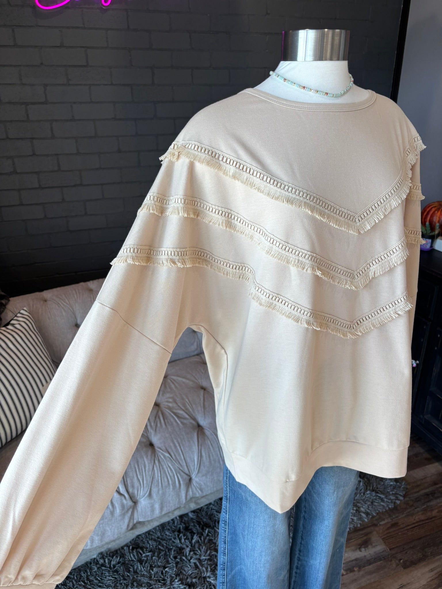 Stay cozy this season with our Tassel Knit Sweater, featuring a chic tassel design that adds playful flair. The warm cream color pairs effortlessly with any fall outfit, making it a must-have statement piece. Soft and comfortable, this sweater ensures you’ll look great while feeling snug all day long. Perfect for layering or wearing on its own, it’s your go-to for effortless fall style.