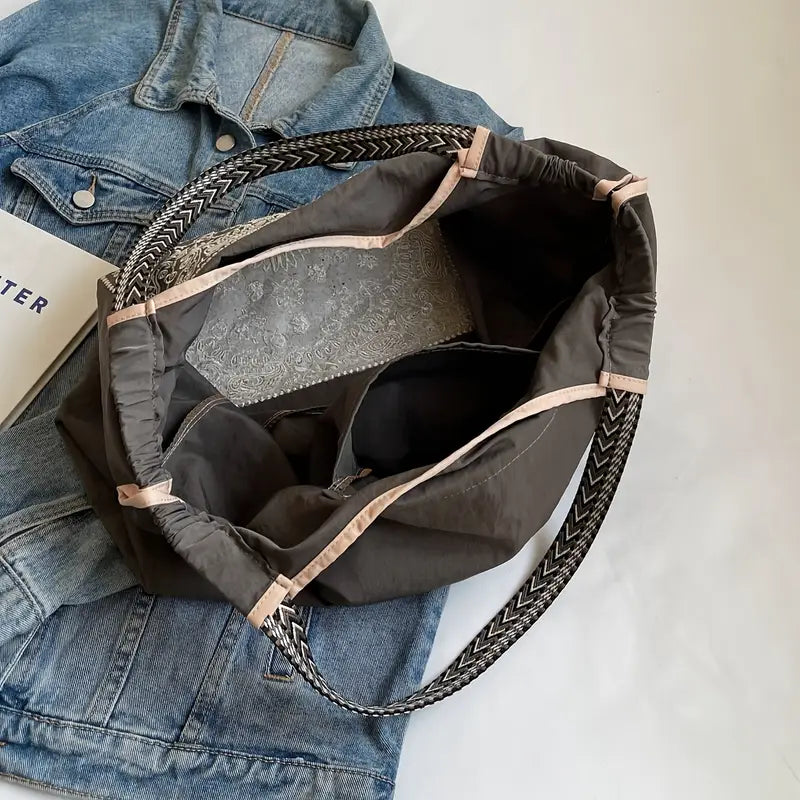 The Therese Tote Bag in brown is your new go-to for everyday style and practicality. With its large capacity, it easily fits all your essentials—perfect for work, shopping, or a casual outing. Made from durable polyester with a smooth lining, it’s lightweight yet sturdy. The classic color pairs effortlessly with any outfit, and the no-closure design makes grabbing your things quick and easy. Whether you’re commuting or meeting friends, this versatile tote keeps you looking trendy without sacrificing function.