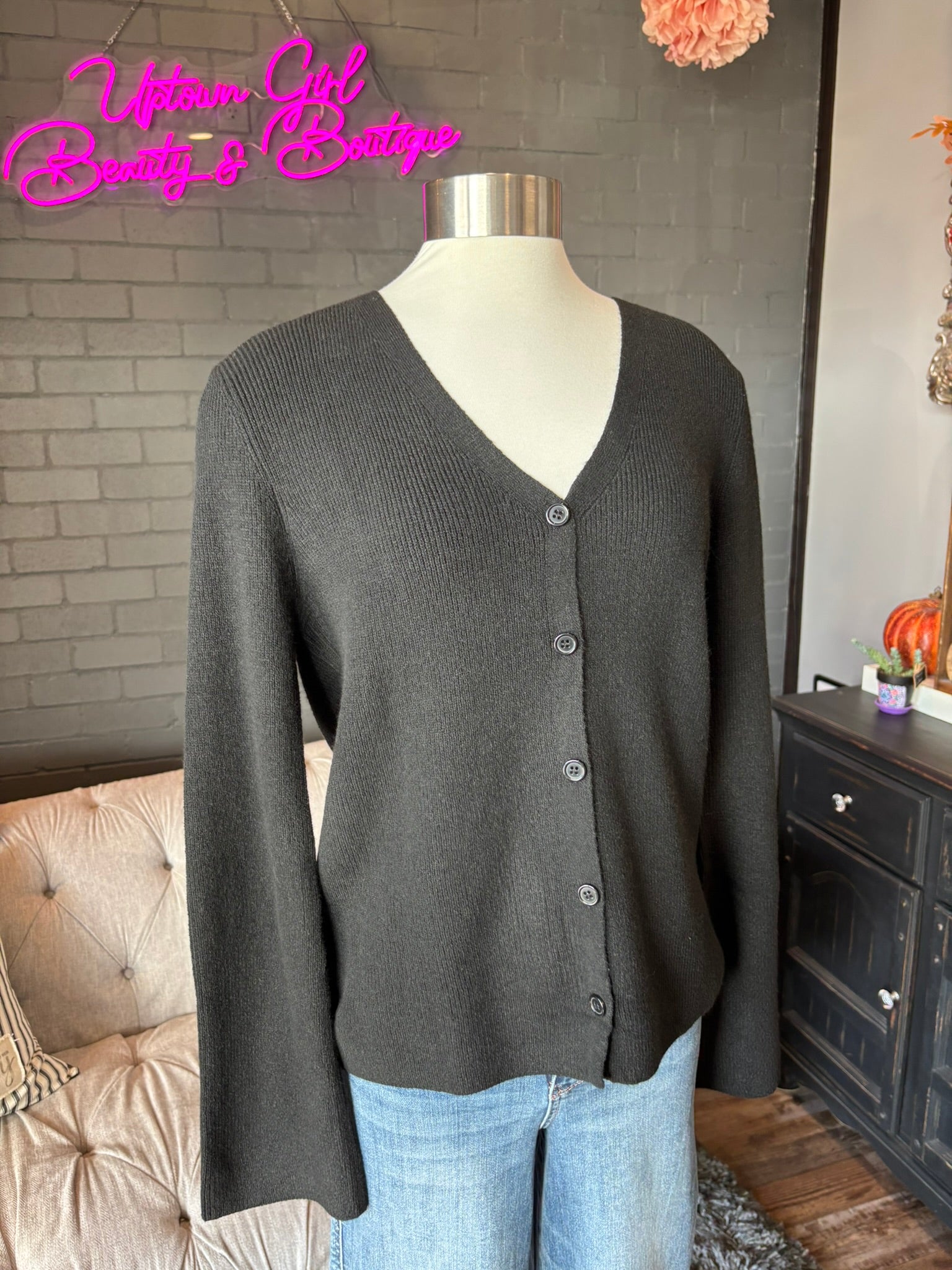 Stay stylish and comfortable with the Ursula Knit Cardigan. Crafted from lightweight ribbed knit, it provides breathable warmth perfect for layering any season. The classic V-neck and button-front design add timeless appeal, while the slim-fit cut highlights your silhouette effortlessly. Made with soft stretch fabric, this cardigan moves with you, ensuring a cozy, flexible fit all day long. Whether paired with jeans or skirts, the Ursula Cardigan is your go-to piece for casual cool and versatile style. Don’t miss out—add this must-have layering essential to your wardrobe today!